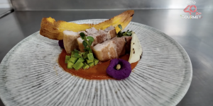 El equipo UVP presentó “Pipián de la Sierra”, un pipián rojo con costilla de cerdo acompañado de nopales, verdolagas, crujiente de plátano y chachulotes de camote morado. El chef destacó la presentación y el trabajo de investigación detrás del platillo.